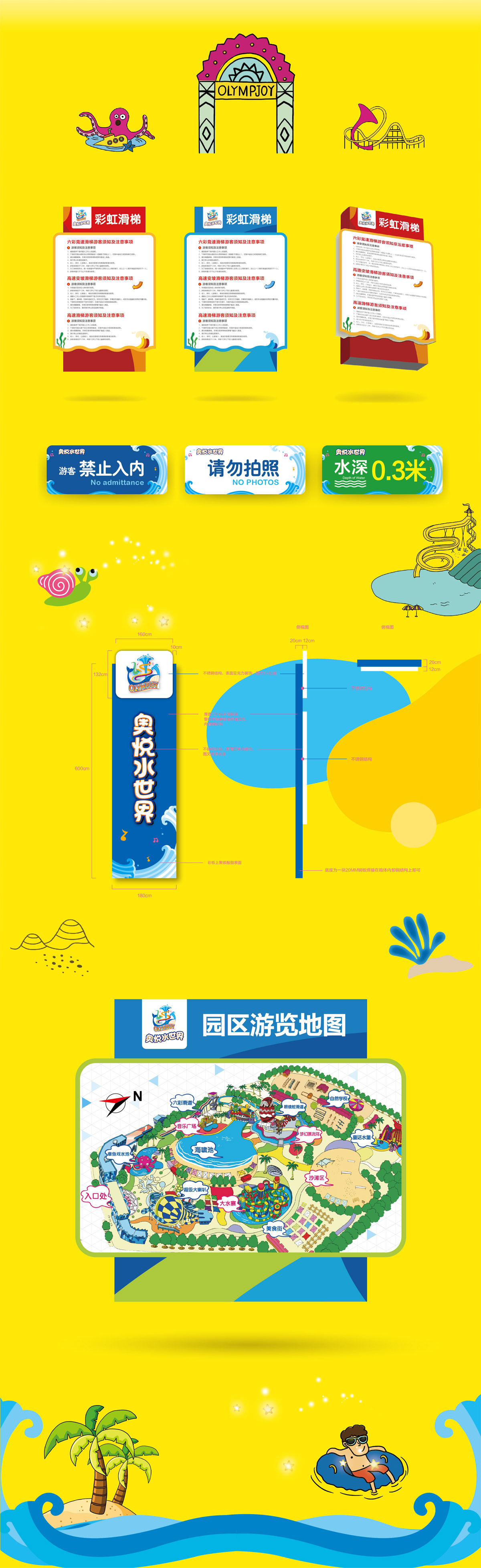 海右博納秉承著對品牌設計的熱情與信仰,對“水上樂園”進行全新的概念剖析與提煉,全面激發創新熱情,全力投入塑造奧悅水世界,前期市場調查中,團隊人員走訪全國各地的大型水上樂園進行市場調研,深入研究和分析消費群體的需求和感受,從品牌定位到品牌整體形象,保證獨特新穎,并遵循以人為本的原則,充分考慮游戲者的感官體驗,注重設計的情感投入,提升趣味性、挑戰性和審美情趣的情感化因素,留給游客足夠的想象空間,并通過綜合多元素的通感刺激,將游戲者帶入具體的情景環境中。